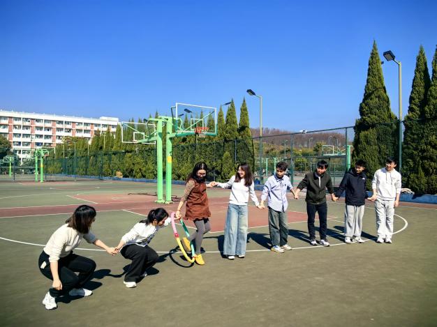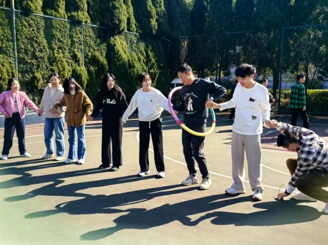 8人掌心相扣围成紧密圆圈,全程禁手辅助的规则,让呼啦圈的传递成为肢体与默契的双重考验。哨声一响,赛场瞬间沸腾!起初部分队伍略显生涩,呼啦圈偶尔在腰间“卡壳”;但转瞬之间,大家便在试错中找准节奏——有人弓身送圈、有人旋腰接环,无需过多言语,一个眼神便能传递默契,一次侧身即是完美配合。灵活的扭动化解阻碍,连贯的传递点燃激情,紧张刺激的竞技氛围里,满是携手破局的欢呼与协作共赢的喜悦,每一圈的顺畅流转,都是团结力量的生动诠释。